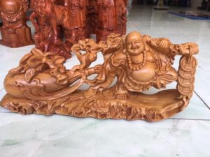Tên sản phẩm: Tượng phật di lặc kéo bao tiền gỗ bách xanh
