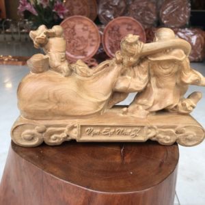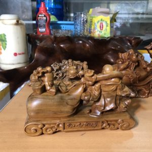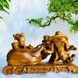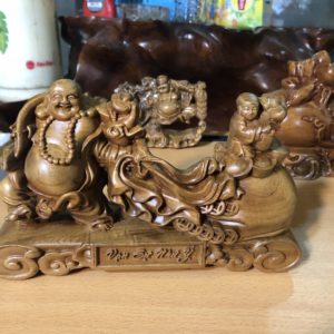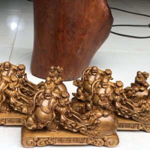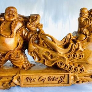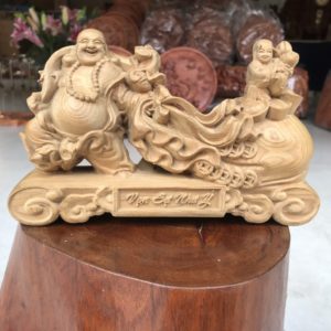 Đặt mua Tượng di lặc kéo bao tiền bằng gỗ bách xanh mẫu mới